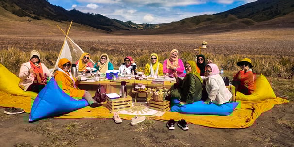Jelajahi Padang savana dan wisata piknik Bromo dengan pemandangan menakjubkan.